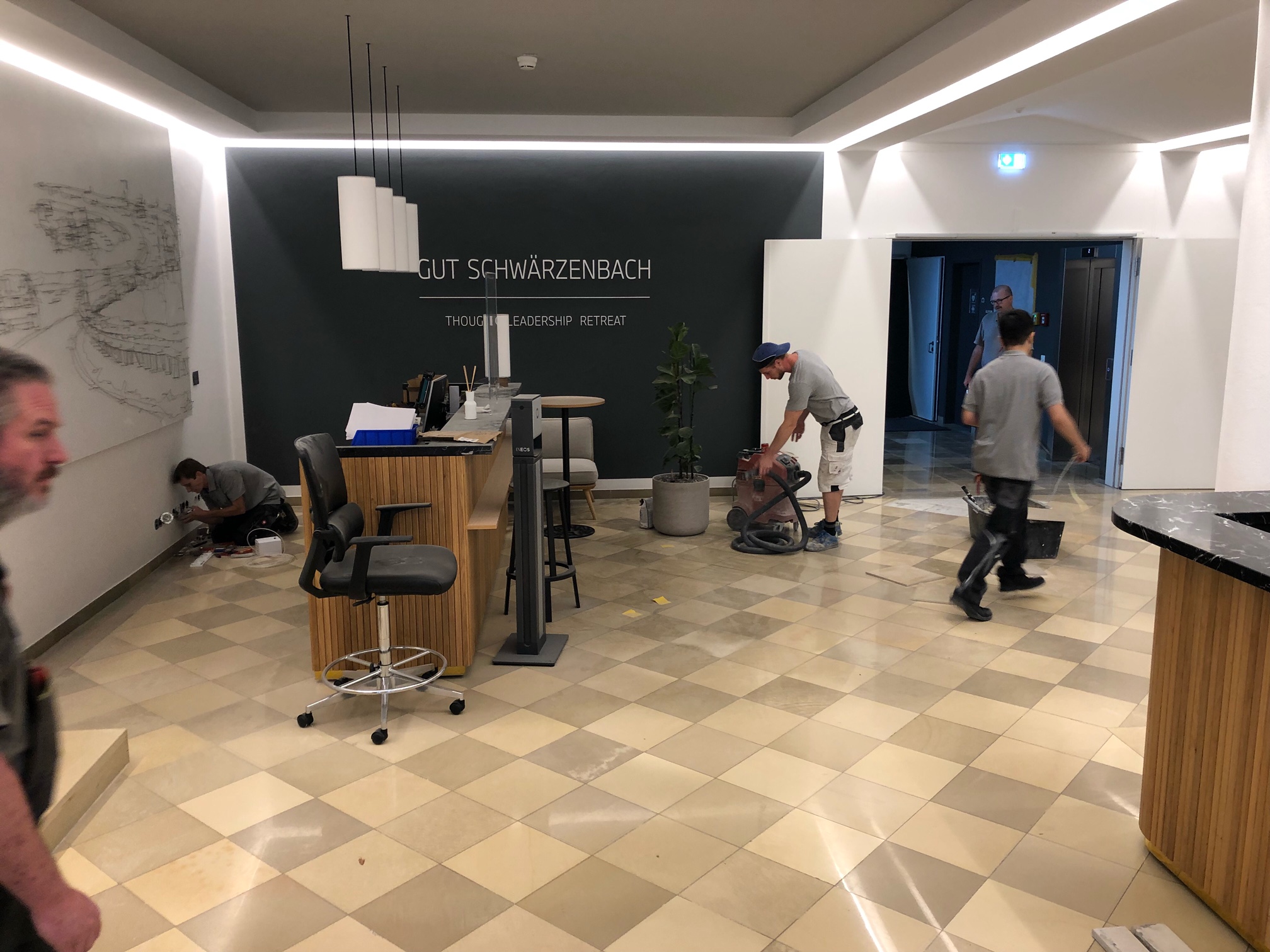 Die Arbeiten fanden größtenteils innerhalb der Schließzeit statt, mussten jedoch auch während des Hotelbetriebs inklusive aller Einschränkungen hinsichtlich Ruhezeiten, Staubabtrennung und physischer Trennung des Bauabschnitts bewerkstelligt werden.