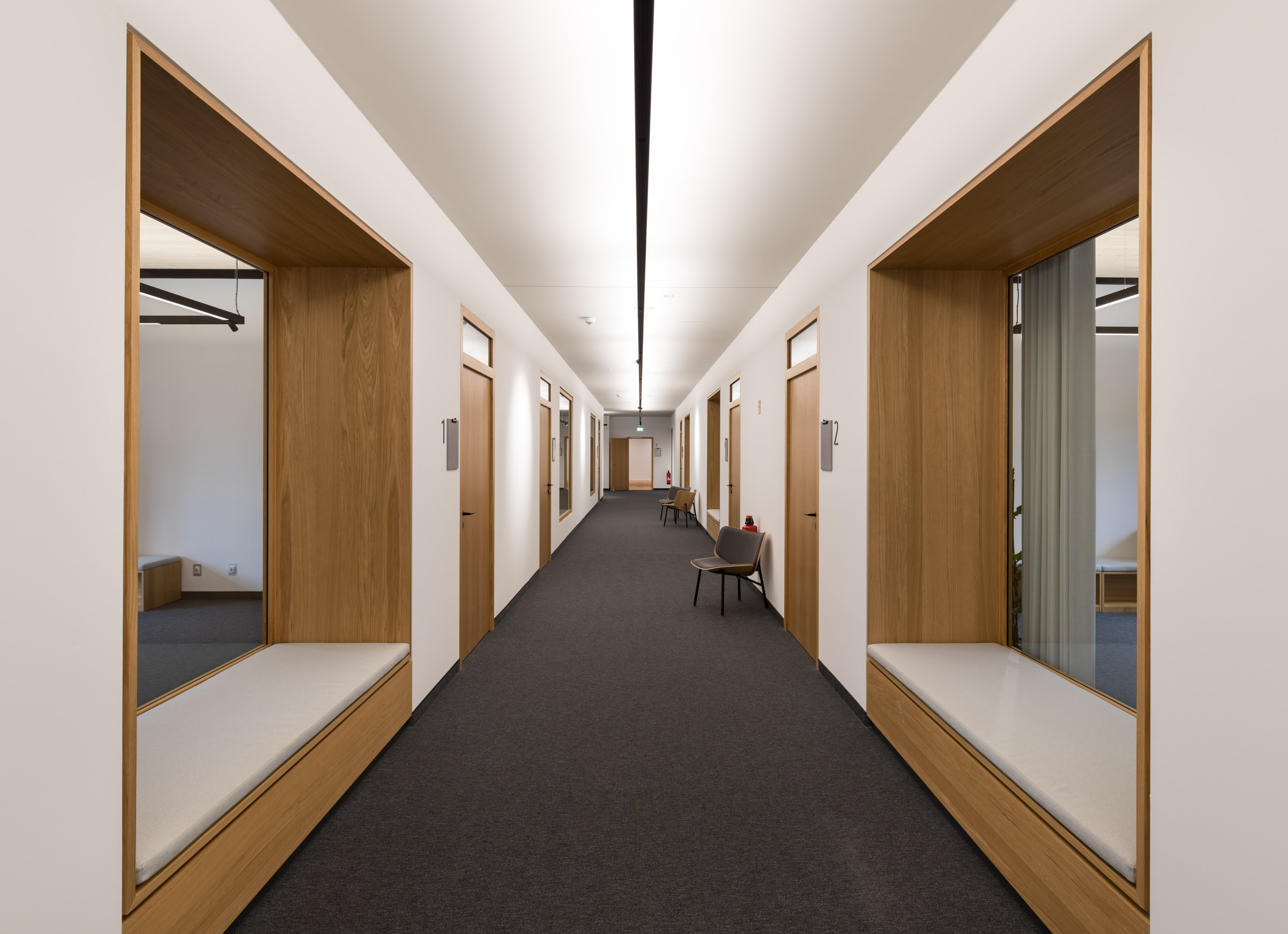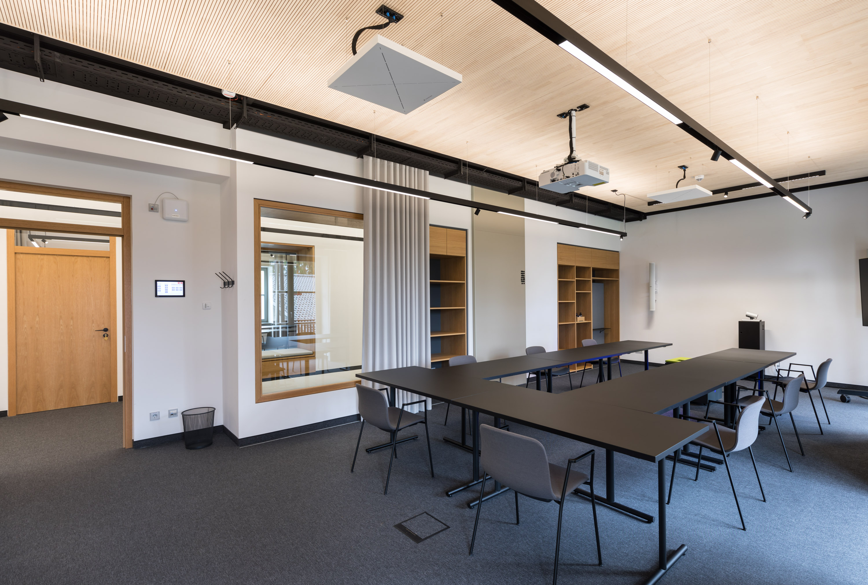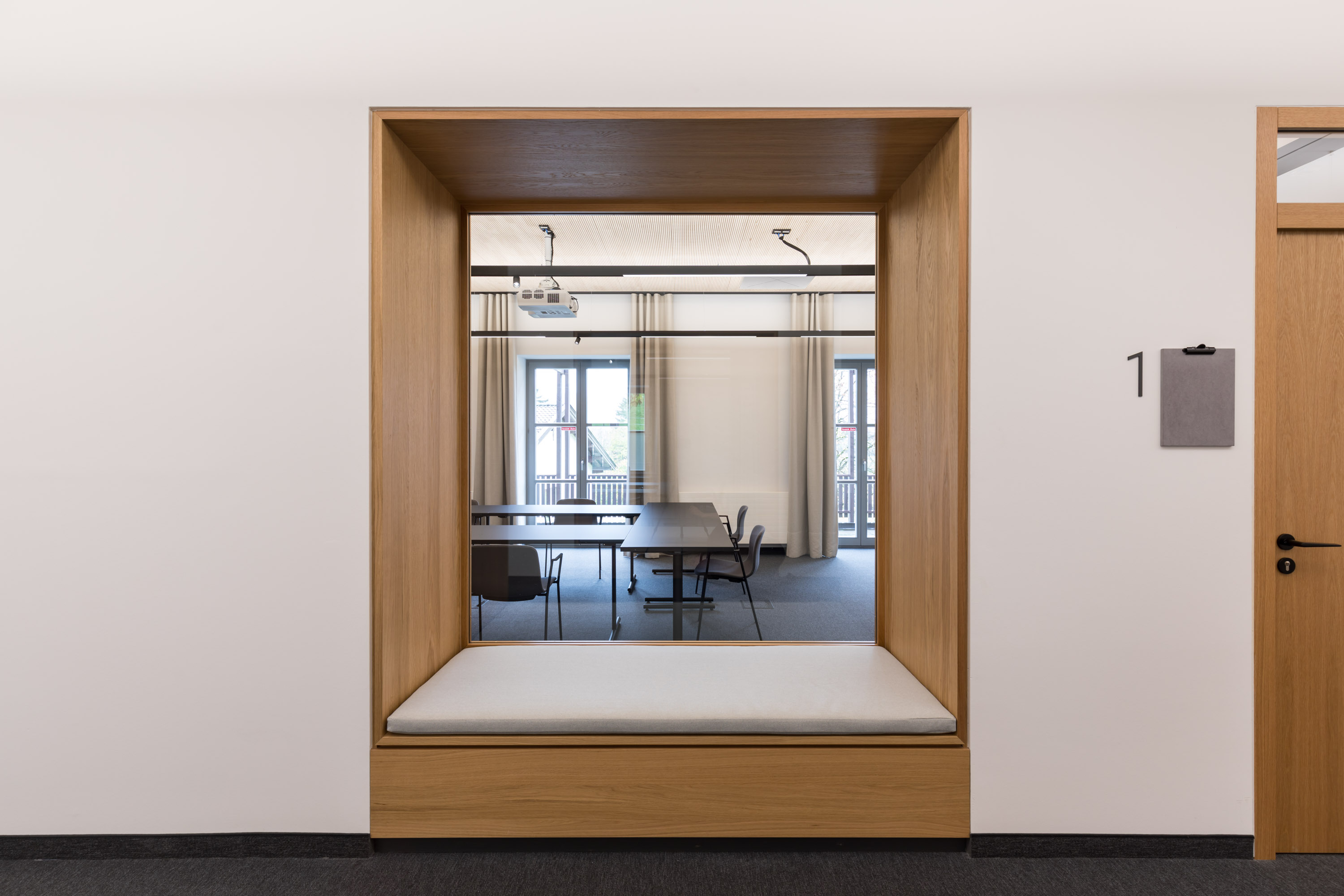 Im Modul 5 wurden Büro- und Konferenzräume renoviert, Böden erneuert, Einbauschränke ergänzt und Medientechnik installiert. Die Brandmeldeanlage wurde an ein neues Fluchtkonzept angepasst, und ein separater Ausgang wurde geschaffen. Alle Nassräume wurden modernisiert.